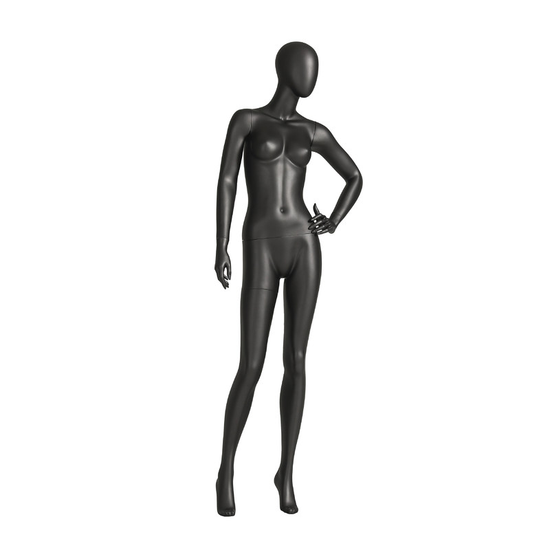 Dieses schwarz gespritzte weibliche Modell mit Kreuzgeweide hat ein einzigartiges Design, das ein Hauch von Mysterium und Mode in Ihren Ausstellungsraum bringt.Jedes Detail ist sorgfältig gefertigt, um eine hohe Qualität des Handwerks zu zeigen.