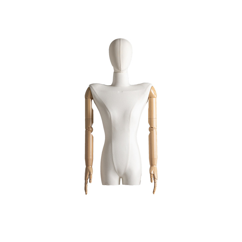 Wir freuen uns sehr, Ihnen dieses modische weibliche Körpermodell mit erhöhten Schultern, Kopf und Armen vorzustellen.Das Design kombiniert Mode und künstlerische Elemente und bietet einen einzigartigen und auffälligen Effekt für Ihre Mode- und Markenanzeige.Dieses weibliche Halbkörpermodell zeigt mit seinem hervorstechenden Schulterdesign den Schnitt und die Silhouette des Kleidungsstücks, wodurch Ihre Präsentation visuell wirkungsvoller wird.Gleichzeitig ist es mit Kopf und Armen ausgestattet, was das Modell dynamischer und realistischer macht und es den Kunden ermöglicht, sich den Verschleiß der Kleidung besser vorzustellen und zu erleben.