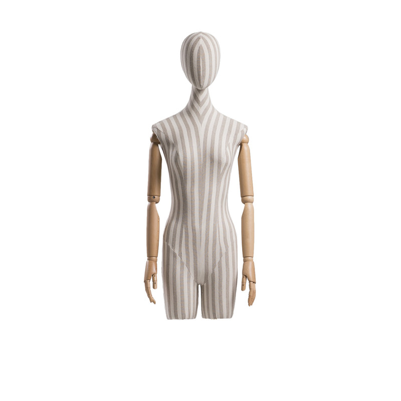 Dieses Halbkörpermodell zog mit seiner Eleganz und Mode viel Aufmerksamkeit auf sich.Ihre edle Haltung und ihre perfekte Figur machen sie zu einer idealen Kandidatin für Modekleidung.Ihr braunes gestreiftes Leinenstoff gibt ein natürliches Gefühl und verleiht gleichzeitig ein bisschen Wärme und Komfort.Der Entwurf dieses Modells betont Details und Handwerkskunst.Ihre Linien sind glatt und spiegeln einen modernen und minimalistischen Stil wider.Ihre zarte Gesichtskontur verleiht einem ein Gefühl von Eleganz und Selbstvertrauen und verleiht gleichzeitig Ihrer Kleidung eine einzigartige Persönlichkeit.
